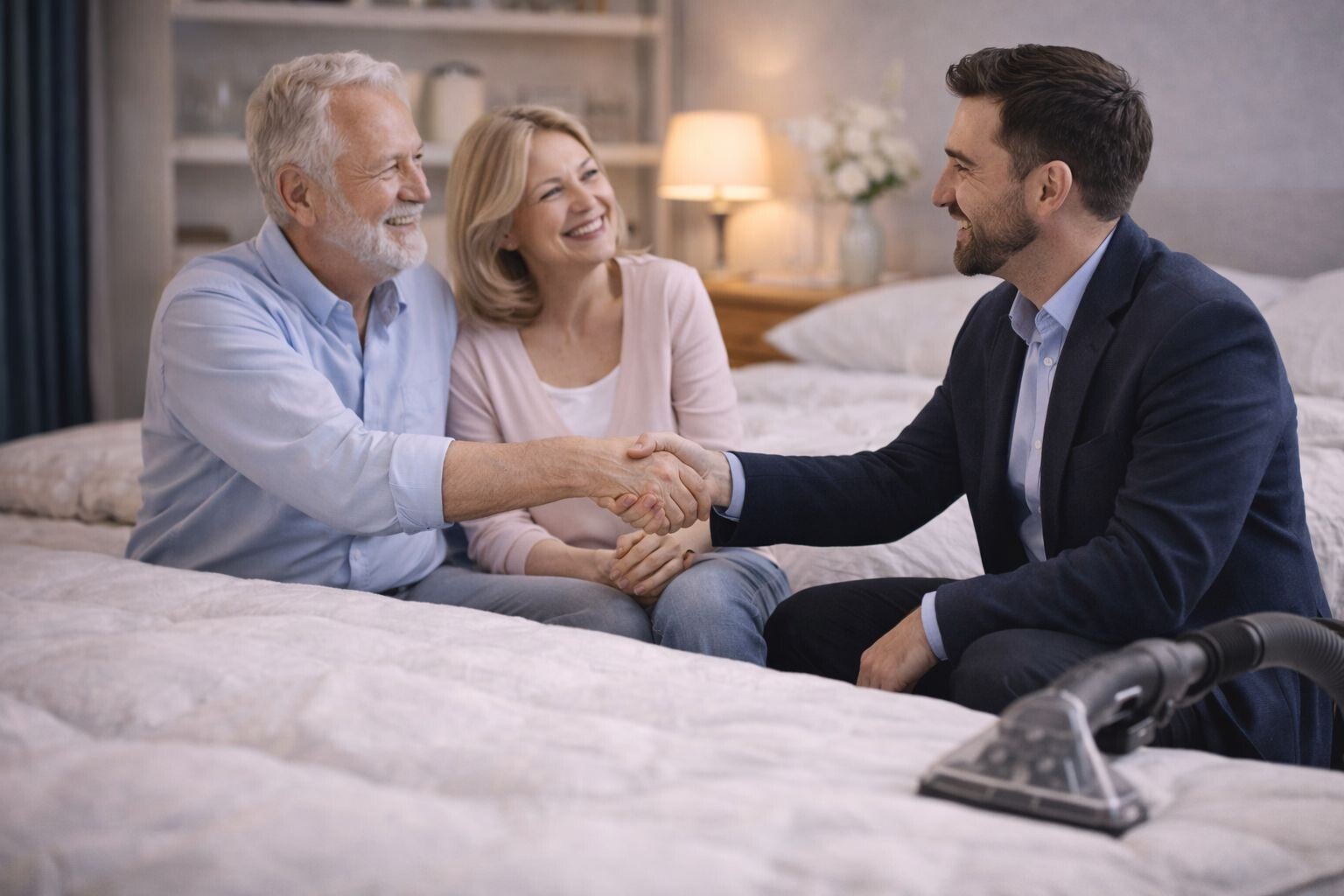 Bei TWR Schlafkonzept kommt es nicht auf Profit oder Gewinn an. Unser Hauptziel ist es, glückliche und zufriedene Kunden zu haben, die uns weiterempfehlen und immer wieder zurückschauen können und sagen: „Die Leute von TWR Schlafkonzept haben uns unser Leben und unsere Gesundheit verbessert.“ Unsere kostenlose Matratzenreinigung und maßgeschneiderte Schlafberatung sind Ausdruck dieser Philosophie – wir bieten Ihnen echte Lösungen für einen hygienischeren und erholsameren Schlaf.
